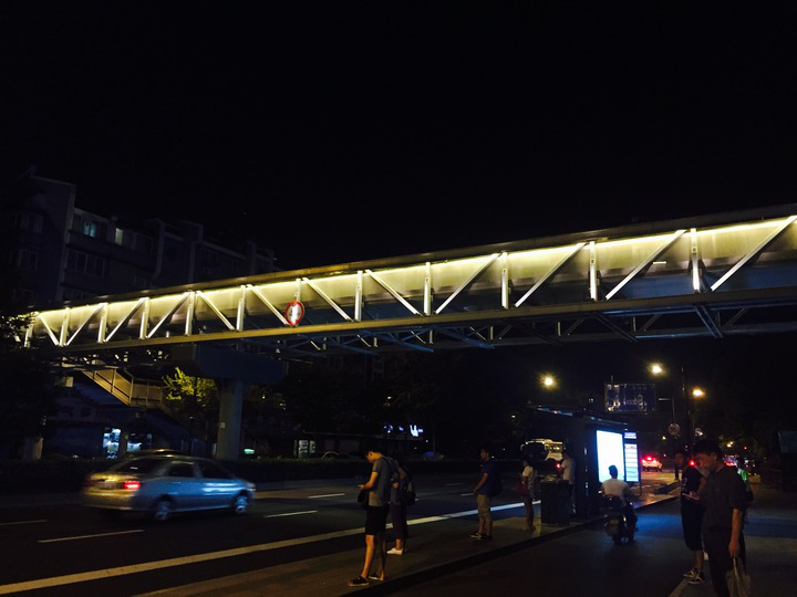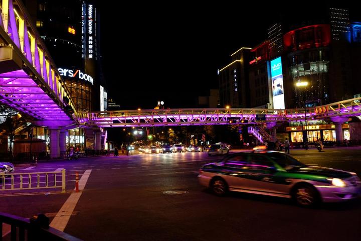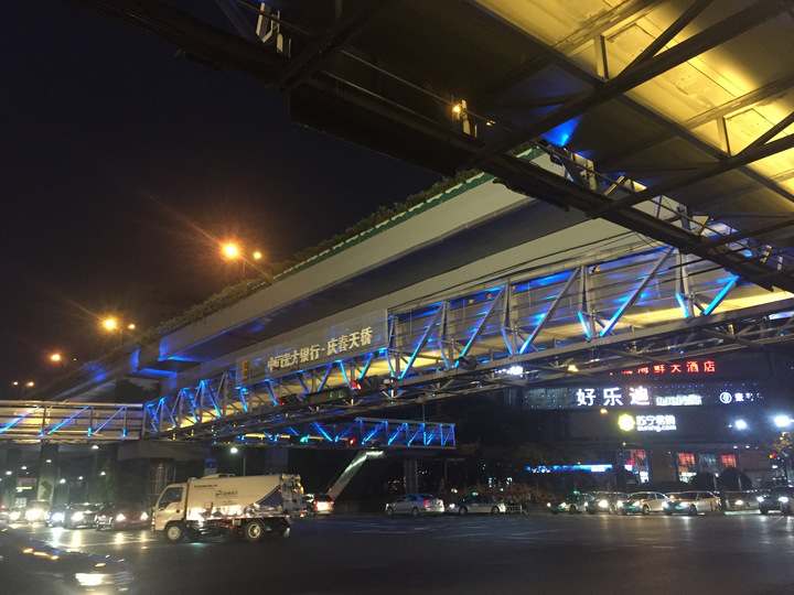 复兴路人行天桥亮灯实景效果