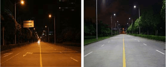作为机动车行驶的快速道,主干道,偏黄色光的钠灯,对看清前方90~160m左右间隔路面情况,效果比白色光略优,特别是对有雾多尘的空气条件下钠灯较有优势。关于人行道,商业步行街,居住小区等道路,LED的显色性优于钠灯,分辨人的情况更清晰,较有优势。
