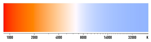 白光以许多不同的色调存在,计量单位为K。K值越低,表示的白光色调越暖、越黄。例如,白炽灯泡发出的光具有2800K的色温。较高的色温表明白光具有较冷、偏蓝的色调。一般认为5600K是中午的日光色温。