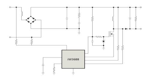 图3. 使用iW3688控制器的整流器、电流控制和LED驱动电路。