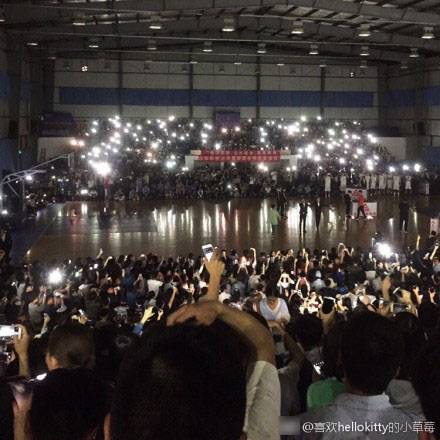 2017年5月23日,山东青岛,山东科技大学在晚上7点半左右受配电室故障影响,全校范围内突然停电,此时在篮球馆正在举行学校篮球全明星比赛,有数千名观众在现场观看比赛,停电之后观众没有慌张,默契的打开手机手电筒。