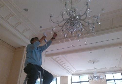 水晶灯虽然外形十分绚丽,但在后期保养还是颇为让人费心。水晶灯具尤为怕积尘和污渍,需要定期进行清理,除去附着的灰尘和污渍才能保证水晶灯具的耀眼光芒和高贵品质。据了解,由于水晶吊灯位置较高,且清洗过程比较麻烦,最好由专业人士清洗。一般消费者购买的水晶灯具的厂家都会有专业的清洗人员负责上门清洗,但也会收取相应的费用。