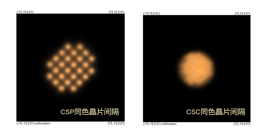 【PK结果】CSC结构可匹配通用光学器件,实现均匀混光,达到单色COB效果;