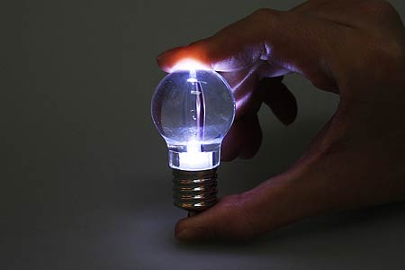 在肇庆高新区的肇庆衡艺实业公司展厅,记者见到这款颇具创意的产品——名叫“Flyte”的磁悬浮灯泡,它是由一个LED灯泡与无线电力接收器共同组成悬浮在空中的组件,而在灯泡的基座中则包含有一个电磁铁。在连接电线的木制底座中则包含有一个无线功率发射器和另一个电磁铁。工作人员将灯泡放在底座上,并慢慢的释放它,就会看到灯泡缓缓上升,并稳稳地悬浮在空中。