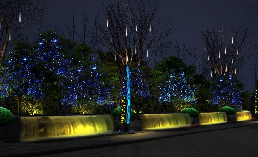 针对这个企业的现状和文化,我们除了通过建筑造型来体现它的中西文化结合之外,还利用灯光来营造气氛。比如门口的这个场景,利用艺术造型灯来凸显企业的品牌文化。这个场景能引起人们的兴趣,很多人都在门口在拍它。