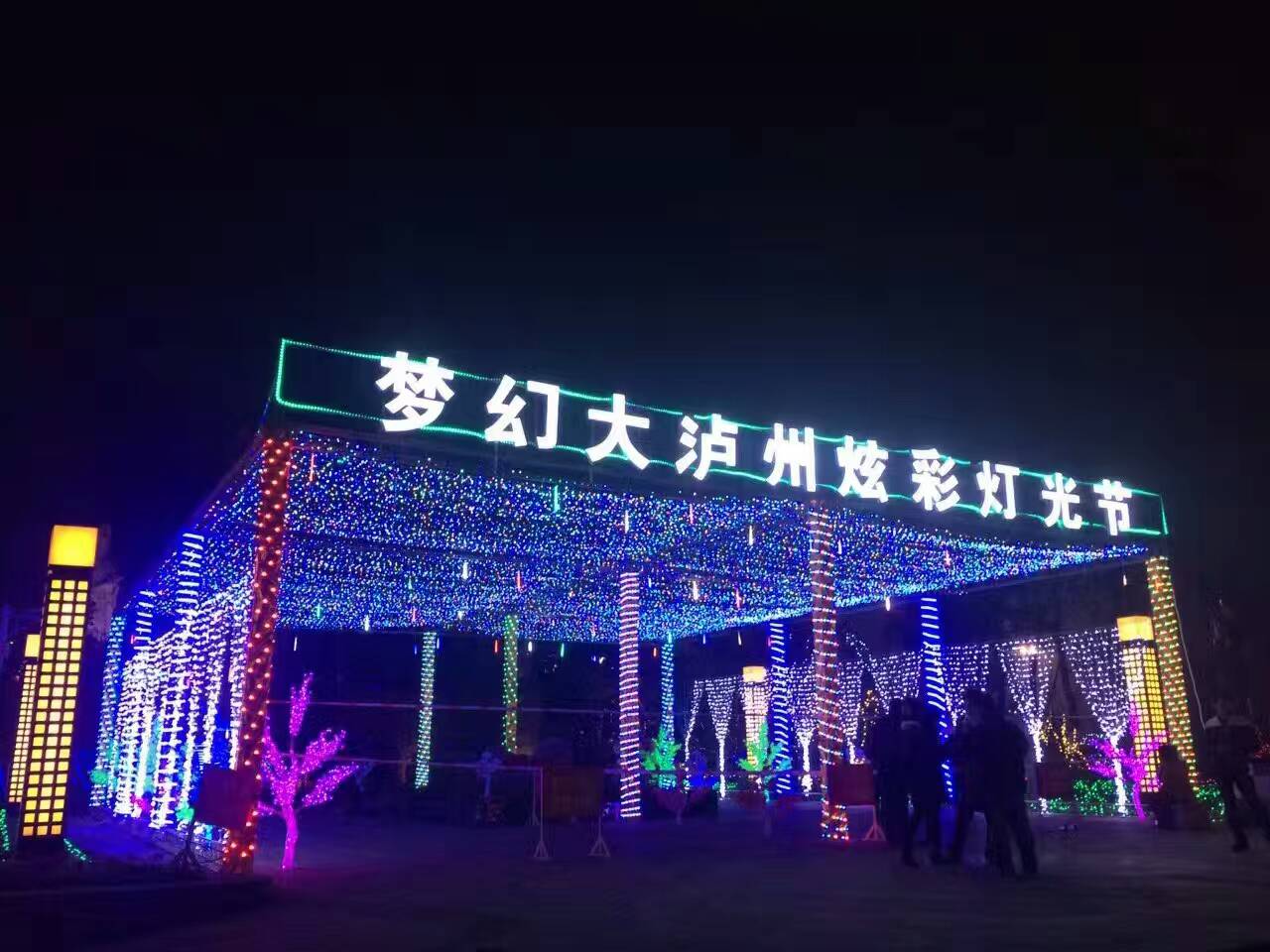据了解,梦幻大泸州 首届炫彩灯光节由泸州电视台、泸州酒城新报主办,佳乐世纪城协办,此次灯光节以“梦幻大泸州”为主题,布置了6000万颗色彩斑斓的灯珠,形成6万平方米的绚烂灯海,着力打造了爱的广场、时光隧道、爱心通道、巍巍长城等40个灯光景象。