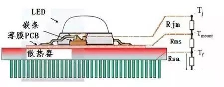 LED到散热器各个热阻的示意图