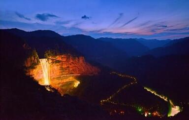 四面山奇景美轮美奂LED打造奇幻七彩瀑布!