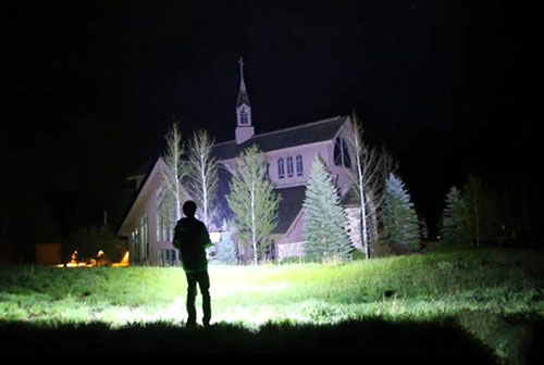 据了解,一般手电筒在照射森林时只能发出微弱的光束,然而,这个超级LED手电筒却照亮了一大片森林!