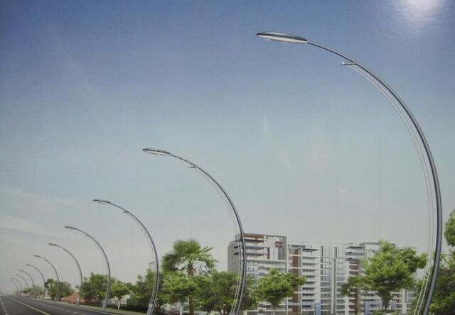 高杆灯:一般指15米以上钢制柱型灯杆和大功率组合式灯架构成的新型照明装置。它由灯头、内部灯具电气、杆体及基础部分组成。灯头造型可根据用户要求、周围环境、照明需要具体而定;内部灯具多由泛光灯和投光灯组成,光源采用NG400高压钠灯,照明半径达60米。杆体一般为圆柱型独体结构,用钢板卷制而成,高度为25-40米指25米以上钢制柱型灯杆和大功率组合式灯架构成的新型照明装置。它由灯头、内部灯具电气、杆体及基础部分组成。灯头造型可根据用户要求、周围环境、照明需要具体而定;内部灯具多由泛光灯和投光灯组成,光源一般采用高压钠灯和金卤灯。,照明半径达60米。杆体一般为圆柱型独体结构,用钢板卷制而成,高度为15-40米。